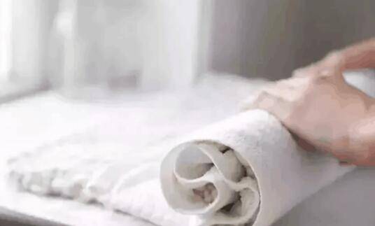 5、然后将平铺在毛巾上的羊毛衫像卷寿司一样把毛巾和羊毛衫卷起来,让毛巾更加充分的吸水分。