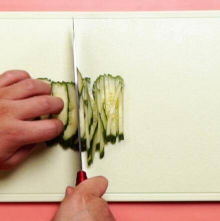 2、黄瓜切丝,紫甘蓝切丝。
