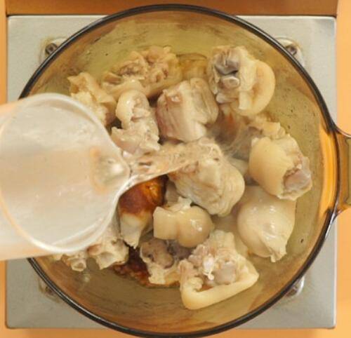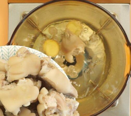 2、将猪蹄500克放入500ML水中浸泡3小时。