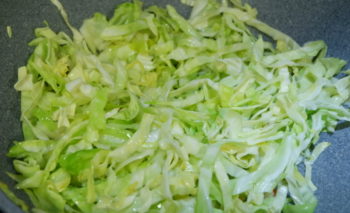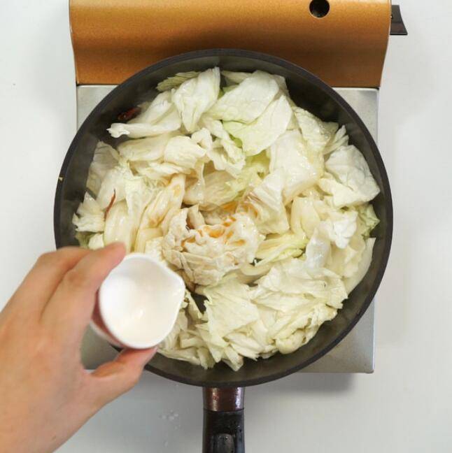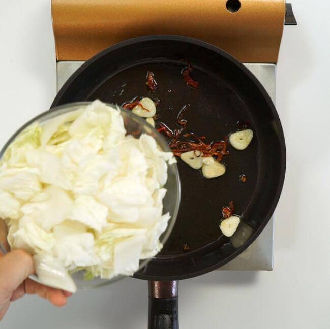 3、倒入白菜。