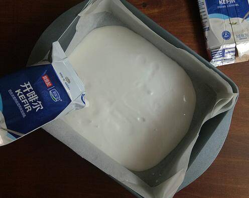 倒入酸奶,大约1cm的厚度就可以啦,不需要太厚。