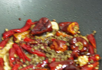 热锅热油,蒜姜辣椒爆炒,然后加入刚熬制剩下的卤水。