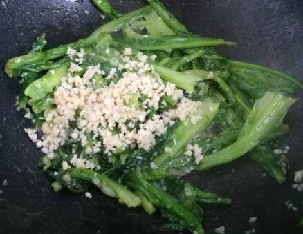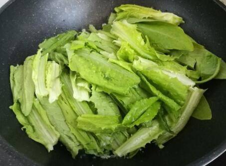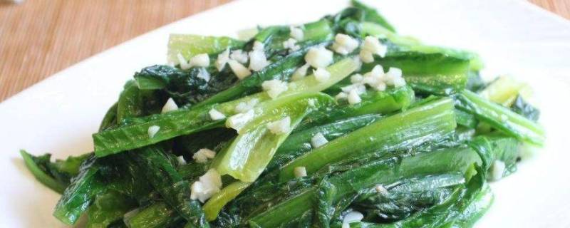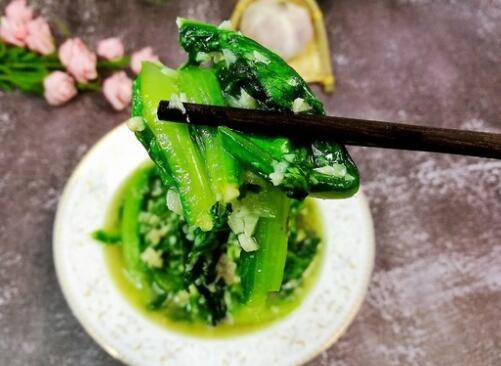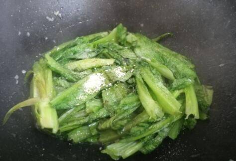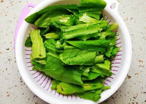切成段即可。用料:油麦菜3棵、蒜末、盐、鸡精、淀粉。