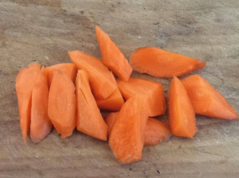 3、胡萝卜洗干净,切成滚刀块。