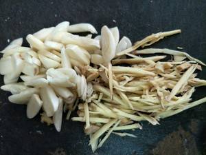 2、大蒜切片,姜切丝。