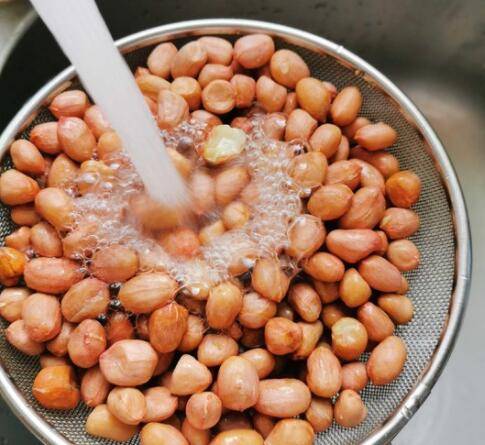 1、准备花生米一份,用清水冲洗干净,控干水。