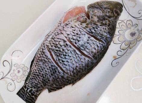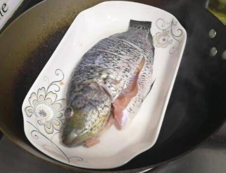 鱼洗净滤干,抹上适量的盐。