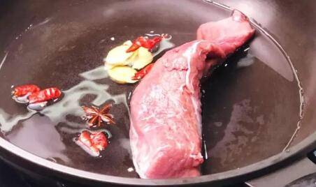 里脊肉1块、八角1个、姜片3片、干辣椒适量。