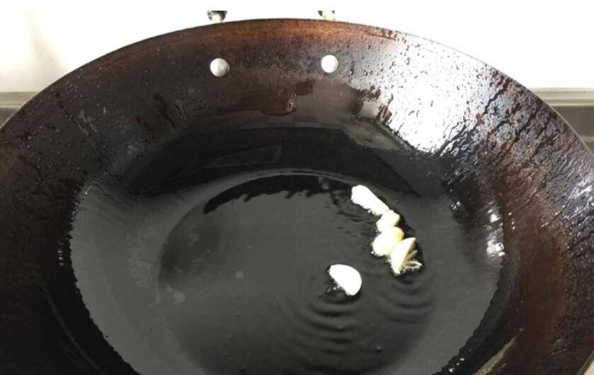 3、锅里加入油,放入蒜瓣煸香。