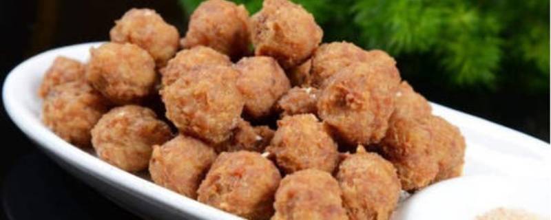 拌入炒好的洋葱碎和面包屑一起搅拌,然后捏成大小一致的丸子,下油锅炸至金黄即可。