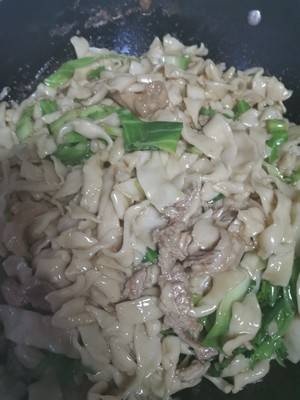 用料:手擀面适量、盐适量、油适量、酱油1勺、葱花适量、包菜叶子5片、肉适量。