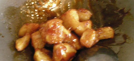 小火慢慢煮,煮到微微焦黄时把地瓜倒进去翻炒均匀,出锅。