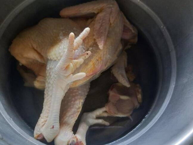 1、将鸡清洗干净,把小葱塞进鸡肚子里。