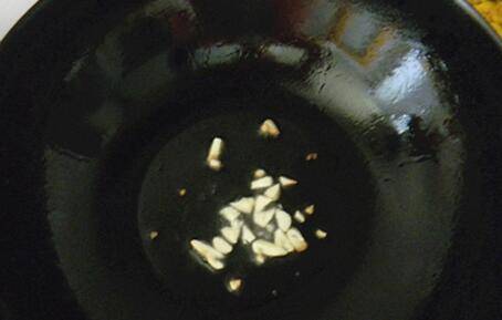 4、炒锅内倒入食用油,油温五成热放入蒜末炒香。