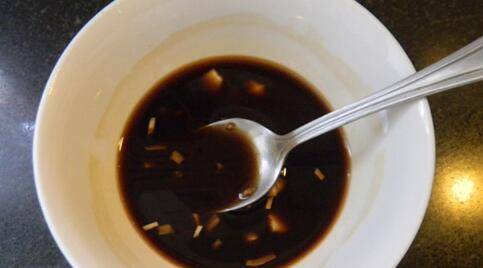 2、调个碗汁,取一小碗倒入生抽2小勺、香醋3小勺、白糖1小勺、干淀粉1小勺、水3小勺、蒜末拌匀备用。