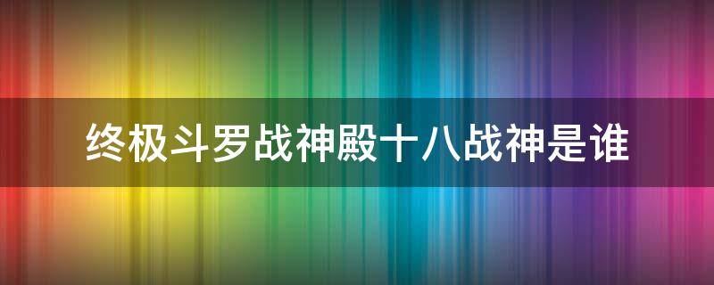 最佳答案终极斗罗战神殿十八战神是原恩光军。原恩光军,第十八战神、97级封号斗罗,以及武魂泰坦龙(历史唯一性)三十三天翼、蓝轩宇等人的监管者。终极斗罗一般指《斗罗大陆Ⅳ终极斗罗》,是起点中文网首发的一本玄幻类小说,作者是唐家三少。《斗罗大陆Ⅳ终极斗罗》是《斗罗大陆》系列的第四部,讲述的是...