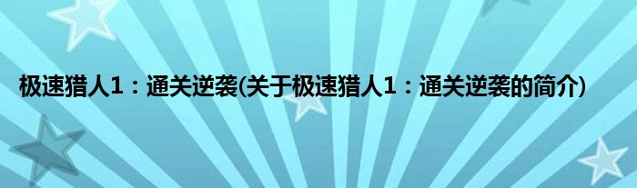 大家好,极速猎人1:通关逆袭,关于极速猎人1:通关逆袭的简介很多人还不知道,现在让我们一起来看看吧!