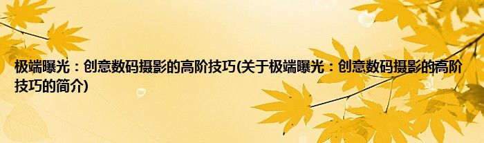 本文关于极端曝光:创意数码摄影的高阶技巧的简介就讲解完毕,希望对大家有所帮助。