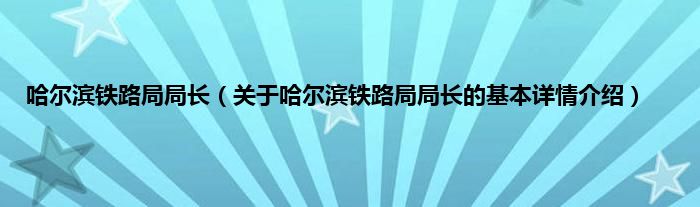 本文关于哈尔滨铁路局局长的基本详情介绍就讲解完毕,希望对大家有所帮助。