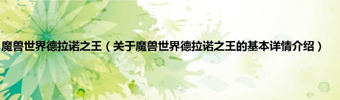 大家好我是小蝌蚪,魔兽世界德拉诺之王,关于魔兽世界德拉诺之王的基本详情介绍很多人还不知道,那么现在让我们一起来看看吧!
