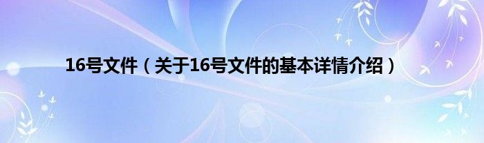 本文关于16号文件的基本详情介绍就讲解完毕,希望对大家有所帮助。
