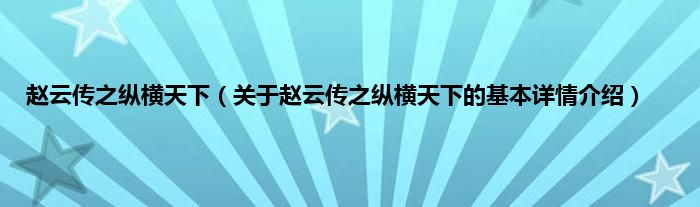 本文关于赵云传之纵横天下的基本详情介绍就讲解完毕,希望对大家有所帮助。