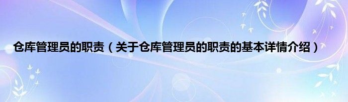 仓库管理员的职责(关于仓库管理员的职责的基本详情介绍)