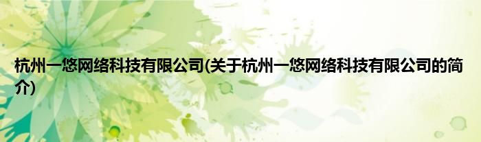 本文关于杭州一悠网络科技有限公司的简介就讲解完毕,希望对大家有所帮助。
