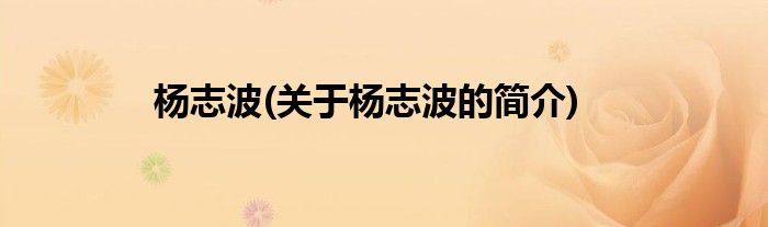 本文关于杨志波的简介就讲解完毕,希望对大家有所帮助。