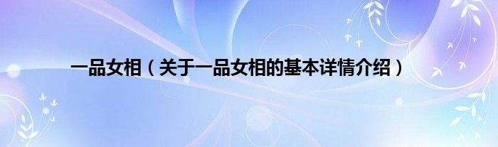 本文关于一品女相的基本详情介绍就讲解完毕,希望对大家有所帮助。