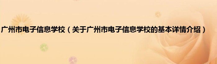 本文关于广州市电子信息学校的基本详情介绍就讲解完毕,希望对大家有所帮助。