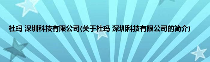 本文关于杜玛 深圳科技有限公司的简介就讲解完毕,希望对大家有所帮助。