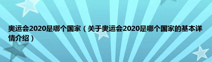 本文关于奥运会2020是哪个国家的基本详情介绍就讲解完毕,希望对大家有所帮助。