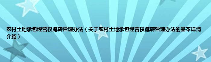 本文关于农村土地承包经营权流转管理办法的基本详情介绍就讲解完毕,希望对大家有所帮助。