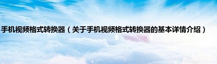 本文关于手机视频格式转换器的基本详情介绍就讲解完毕,希望对大家有所帮助。