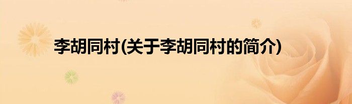 大家好,李胡同村,关于李胡同村的简介很多人还不知道,现在让我们一起来看看吧!