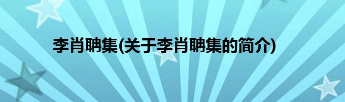 大家好,李肖聃集,关于李肖聃集的简介很多人还不知道,现在让我们一起来看看吧!