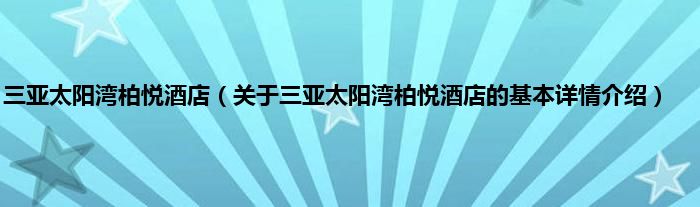三亚太阳湾柏悦酒店(关于三亚太阳湾柏悦酒店的基本详情介绍)