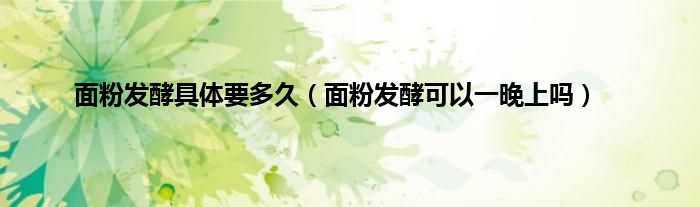 大家好,小科来为大家解答以上问题。面粉发酵具体要多久,面粉发酵可以一晚上吗很多人还不知道,现在让我们一起来看看吧!