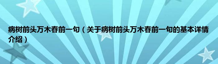 本文关于病树前头万木春前一句的基本详情介绍就讲解完毕,希望对大家有所帮助。