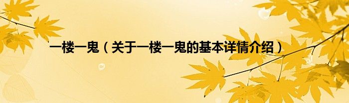 本文关于一楼一鬼的基本详情介绍就讲解完毕,希望对大家有所帮助。