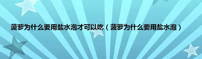 菠萝含有营养不良、羟基色、菠萝蛋白酶三种有害物质,分别对皮肤、口腔黏膜、血管收缩、血压升降有刺激作用。此外,还含有过敏物质菠萝朊病毒和草酸。盐水浸泡可以使它们失去致敏能力,分解部分有机酸,去除酸味,菠萝味道更鲜美。