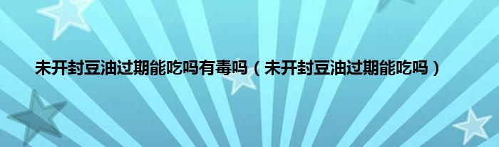 大家好,小科来为大家解答以上问题。未开封豆油过期能吃吗有毒吗,未开封豆油过期能吃吗很多人还不知道,现在让我们一起来看看吧!