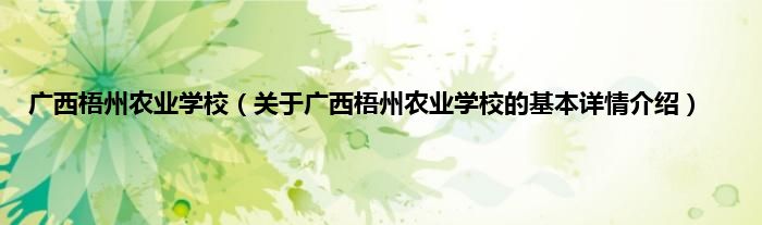 本文关于广西梧州农业学校的基本详情介绍就讲解完毕,希望对大家有所帮助。