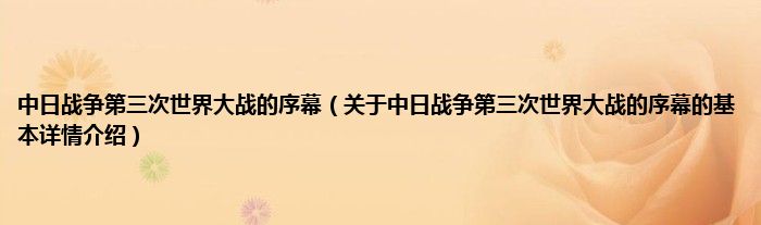 本文关于中日战争第三次世界大战的序幕的基本详情介绍就讲解完毕,希望对大家有所帮助。