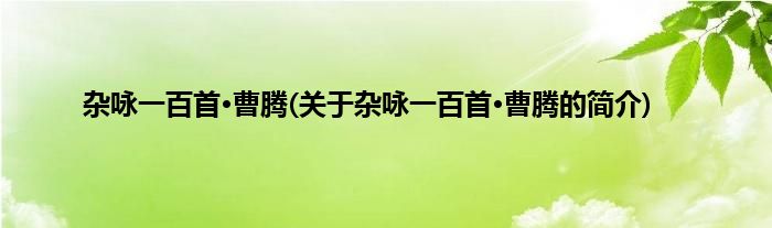 1、 《杂咏一百首·曹腾》是宋代诗人刘克庄创作的诗词之一。
