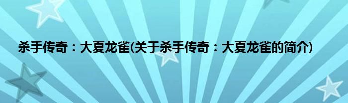 杀手传奇:大夏龙雀(关于杀手传奇:大夏龙雀的简介)