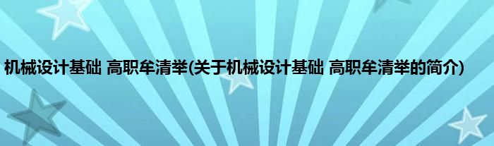 本文关于机械设计基础 高职牟清举的简介就讲解完毕,希望对大家有所帮助。