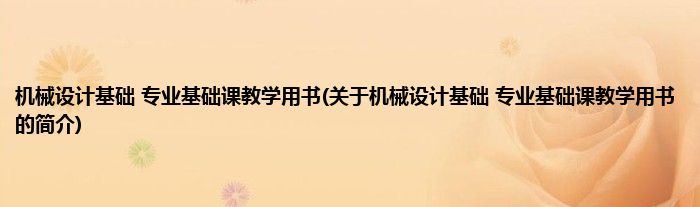 本文关于机械设计基础 专业基础课教学用书的简介就讲解完毕,希望对大家有所帮助。