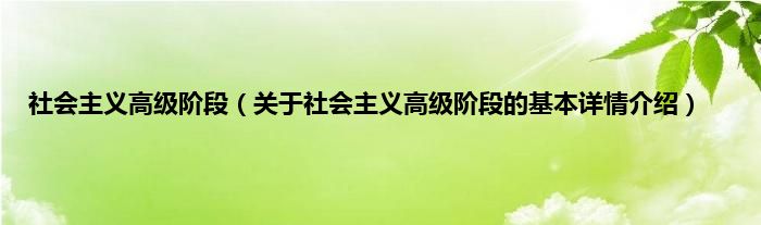 本文关于社会主义高级阶段的基本详情介绍就讲解完毕,希望对大家有所帮助。